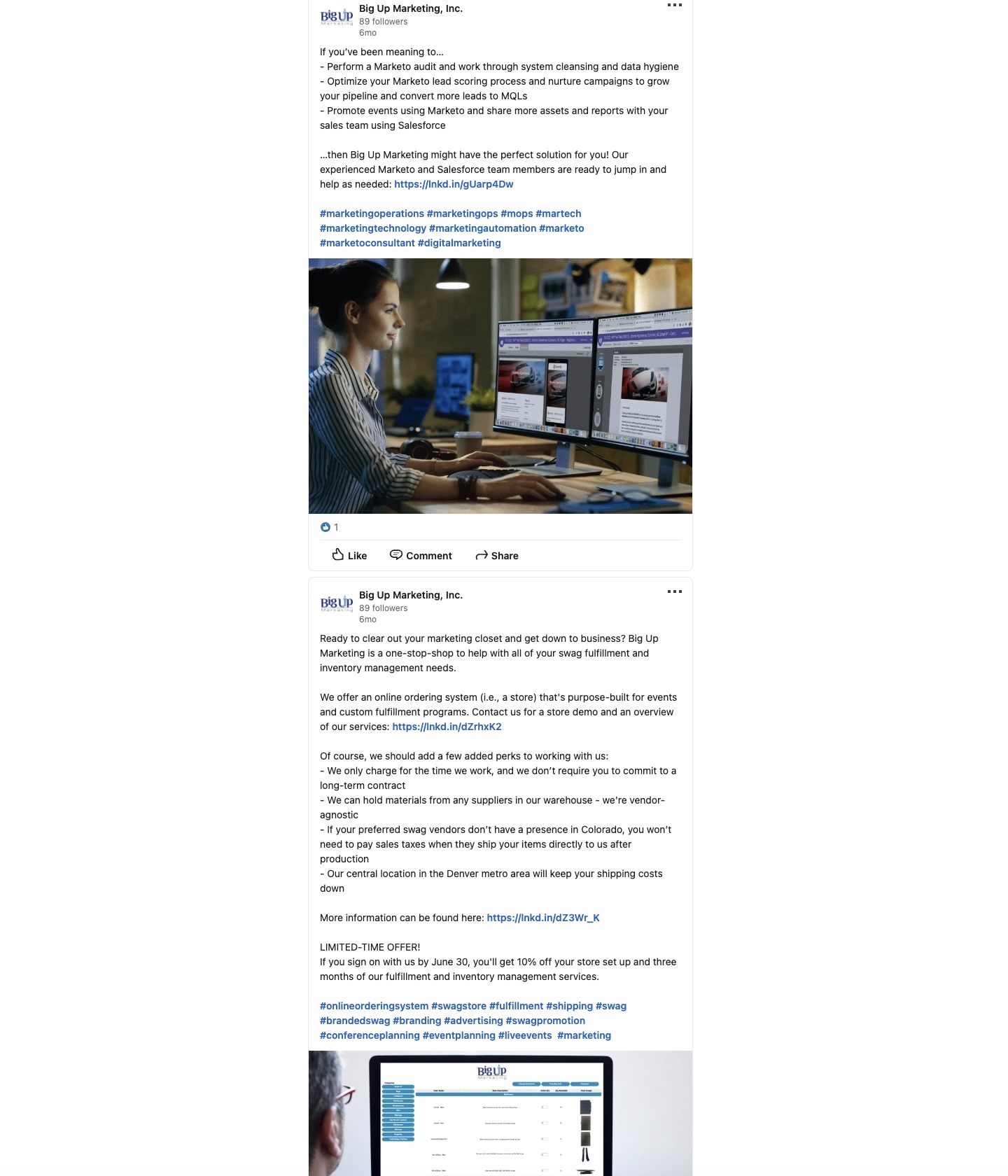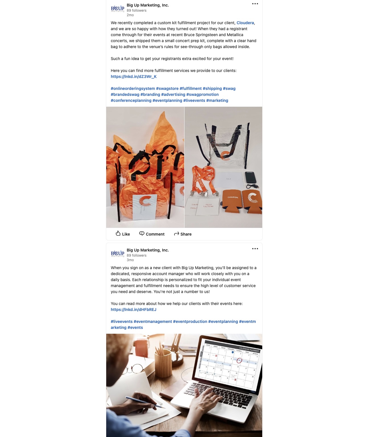 Challenge: Events management and fulfillment company that desired weekly content development and scheduling through their social media platforms.