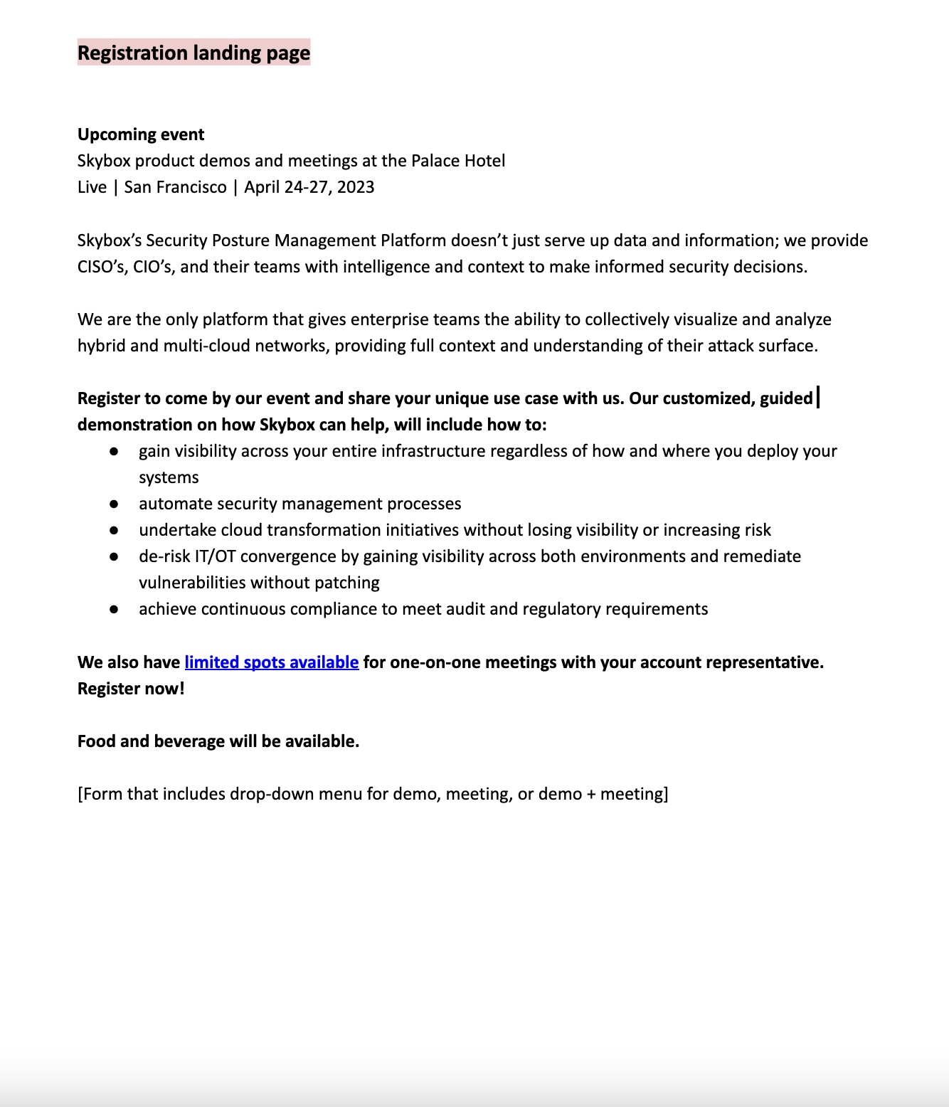 Solution: We wrote copy for the email sequence that corresponded with their actions taken – if a person registers for a 1:1 meeting, they got a specific email, if a person viewed the email but did not register, they got another email. The copy was written to keep the recipients engaged and to push them further down the sales funnel.